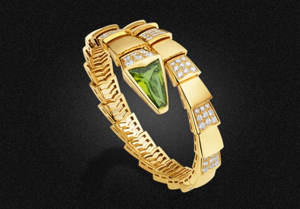 Serpenti手镯,18K黄金材质,橄榄石蛇头,半密镶钻http://mmbiz.qpic.cn/mmbiz/osv7xnooomGhhBP8J3wRG93SxXgPDCspCUPibmAmbu6JGH0lpibYe2K7e4VibAmiaAm18s9t54sd1GToWnLqNNvWcg/0?wxfrom=5宝格丽经典之彩宝款(全集)" TITLE="【珠宝知识】