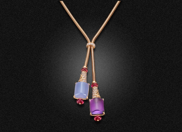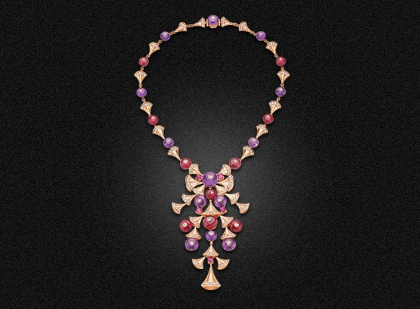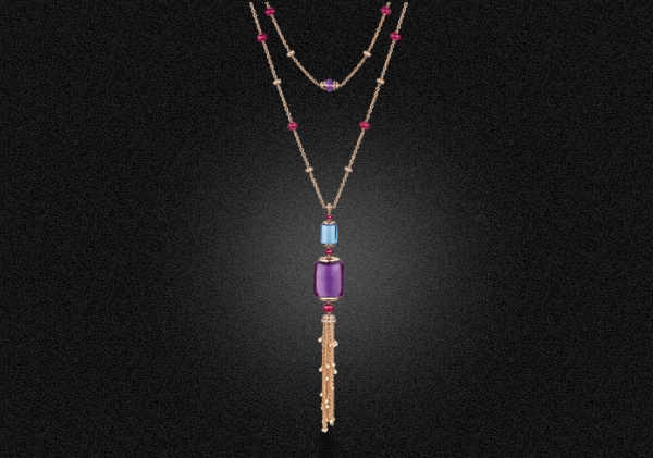 Cocktail项链,18K玫瑰金材质,镶嵌紫水晶,饰以密镶钻石。长度38-43.5厘米。http://mmbiz.qpic.cn/mmbiz/osv7xnooomGhhBP8J3wRG93SxXgPDCsprPPfuB6UricMs0HbekMt12Dxbr6UJCjMcEvB48JyQFbMQLI0nogjlSA/0?wxfrom=5宝格丽经典之彩宝款(全集)" TITLE="【珠宝知识】