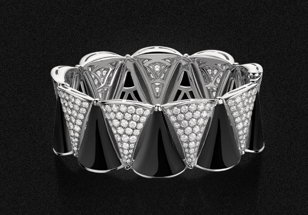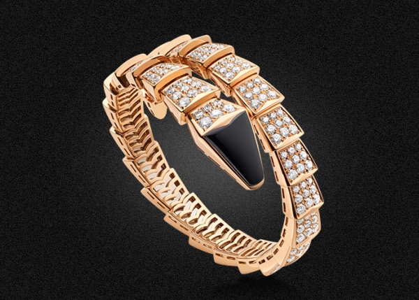 Serpenti手镯,18K玫瑰金材质,镶嵌黑色缟玛瑙,饰以全密镶钻石。http://mmbiz.qpic.cn/mmbiz/osv7xnooomGhhBP8J3wRG93SxXgPDCspxIl3L7Q1K1M249wNK9o2SU5kDmRbF5ia9uwWpib17tSiaEetrLcWtT8oA/0?wxfrom=5宝格丽经典之彩宝款(全集)" TITLE="【珠宝知识】