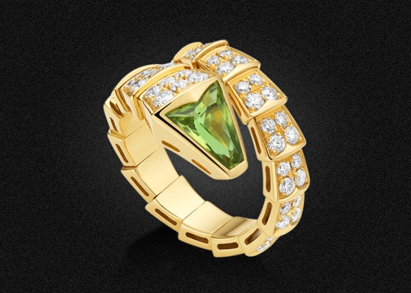 Serpenti 戒指,18K黄金材质,橄榄石蛇头,密镶钻石http://mmbiz.qpic.cn/mmbiz/osv7xnooomGhhBP8J3wRG93SxXgPDCspHZ7omUywYyKZRib4P1QKv0s68GOePsBxvauCtdhFqic3YQ011F9S7aibw/0?wxfrom=5宝格丽经典之彩宝款(全集)" TITLE="【珠宝知识】