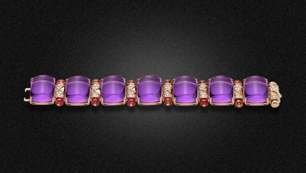 MVSA手镯,18K玫瑰金材质,镶嵌紫水晶,饰以密镶钻石。http://mmbiz.qpic.cn/mmbiz/osv7xnooomGhhBP8J3wRG93SxXgPDCspibx4bqraGjGGiaDFZK6mLiazTyY0LUTG293Y9gOsEGlDy2XOYhrZpAHibg/0?wxfrom=5宝格丽经典之彩宝款(全集)" TITLE="【珠宝知识】