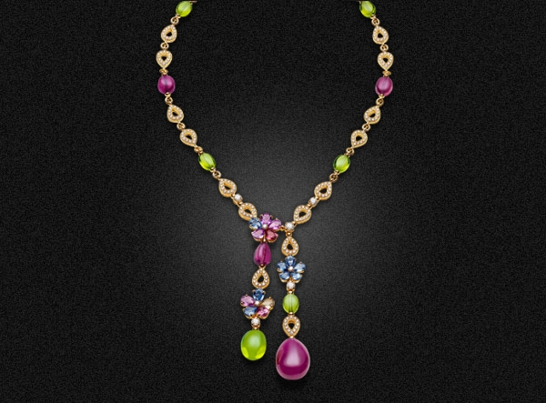 18K黄金项链,配别致蓝宝石、橄榄石、碧玺、钻石和密镶钻石。长:14.82-16.80英寸http://mmbiz.qpic.cn/mmbiz/osv7xnooomGhhBP8J3wRG93SxXgPDCspJIUmdzGhrkD3kVibFC3MV3Johb75OsNFFPo9icoj2yUrx6tE05ObwSVA/0?wxfrom=5宝格丽经典之彩宝款(全集)" TITLE="【珠宝知识】
