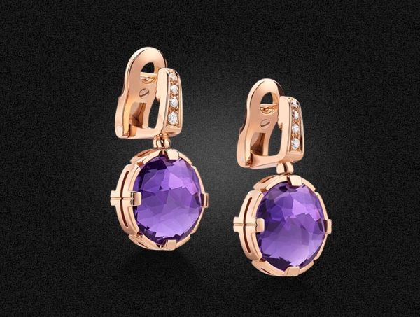 Cocktail短款耳环,18K玫瑰金材质,镶嵌紫水晶,饰以密镶钻石。http://mmbiz.qpic.cn/mmbiz/osv7xnooomGhhBP8J3wRG93SxXgPDCspKSKI5jeWsZjicTia8qO7ZiaNH93TjYDPjZlLo5ibxRKX8m7Br9zZtewTqg/0?wxfrom=5宝格丽经典之彩宝款(全集)" TITLE="【珠宝知识】