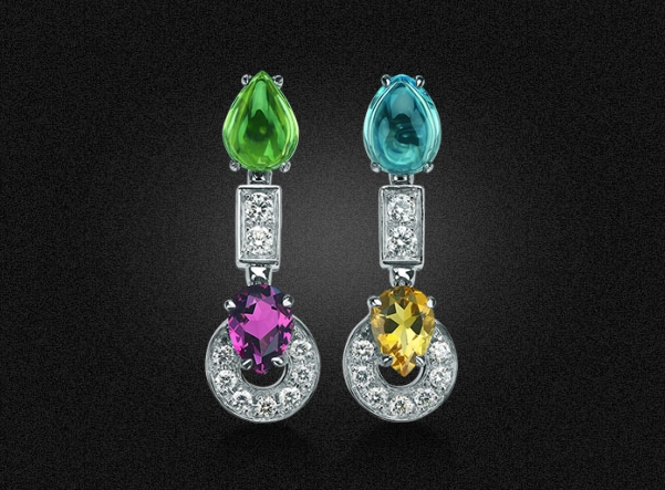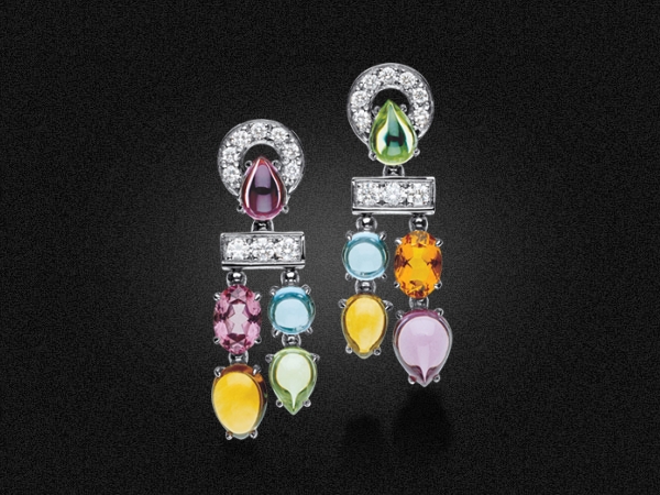Collection双排吊坠耳环,18K白金材质,镶嵌橄榄石、红色石榴石、黄水晶和蓝色托帕石,饰以密镶钻石。长度5厘米。http://mmbiz.qpic.cn/mmbiz/osv7xnooomGhhBP8J3wRG93SxXgPDCspKicMVb7BXnJyo7ZVaDyLWwmDCEeeT5UPZRicdxWE6E3hNM0m2a4WL2icA/0?wxfrom=5宝格丽经典之彩宝款(全集)" TITLE="【珠宝知识】