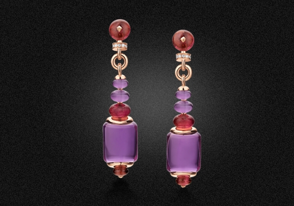 DIVA 18K玫瑰金耳环,饰紫水晶、红碧玺和密镶钻石。http://mmbiz.qpic.cn/mmbiz/osv7xnooomGhhBP8J3wRG93SxXgPDCsp99eiaVicAPfuRYACFsSO8uIn9rI7CMRmBPt1PYQibZ9QQaUpthXHXxs8g/0?wxfrom=5宝格丽经典之彩宝款(全集)" TITLE="【珠宝知识】