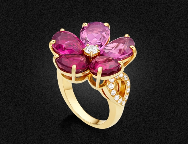 Sapphire Flower 18K黄金戒指,配粉红碧玺、红碧玺和密镶钻石。http://mmbiz.qpic.cn/mmbiz/osv7xnooomGhhBP8J3wRG93SxXgPDCspMu4ibqsI3QcbSt9zvlicU25utDmT57GnQmDrNvl0v4IyS8ibYyAoicpsxg/0?wxfrom=5宝格丽经典之彩宝款(全集)" TITLE="【珠宝知识】