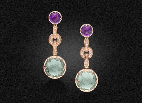 Cocktail长款耳环,18K玫瑰金材质,镶嵌绿水晶和紫水晶,饰以密镶钻石。http://mmbiz.qpic.cn/mmbiz/osv7xnooomGhhBP8J3wRG93SxXgPDCspPB8pib2nmfkrkJDg7WgwmRfDge6pNiaFDZ9BbvzBmjgWX8W0E2qauoUA/0?wxfrom=5宝格丽经典之彩宝款(全集)" TITLE="【珠宝知识】