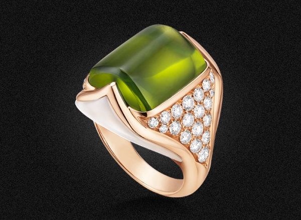 MVSA戒指,18K玫瑰金材质,镶嵌橄榄石和珍珠母贝,饰以密镶钻石。http://mmbiz.qpic.cn/mmbiz/osv7xnooomGhhBP8J3wRG93SxXgPDCspTuLQ0ibnAMNPv1lMG6mwfDuxeCjsFuJEjVWPicgZYtj3ca25QFAQXyDw/0?wxfrom=5宝格丽经典之彩宝款(全集)" TITLE="【珠宝知识】