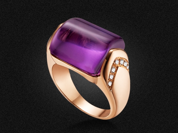 Cocktail戒指,18K玫瑰金材质,镶嵌紫水晶,饰以密镶钻石。http://mmbiz.qpic.cn/mmbiz/osv7xnooomGhhBP8J3wRG93SxXgPDCspBHyiaZaic1qAaGWt0e0phb9ePZicOEczOibjCsDAfrDAhNjIaoBtvnEA8w/0?wxfrom=5宝格丽经典之彩宝款(全集)" TITLE="【珠宝知识】