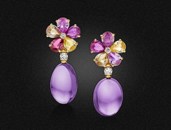 Sapphire Flower 18K黄金耳环,配别致蓝宝石、紫水晶、钻石和密镶钻石。http://mmbiz.qpic.cn/mmbiz/osv7xnooomGhhBP8J3wRG93SxXgPDCspVNpricibQTlom7E1Bxhghl9IeA07VFicIesG2mQLbpLHyhTibsSHljPtwQ/0?wxfrom=5宝格丽经典之彩宝款(全集)" TITLE="【珠宝知识】