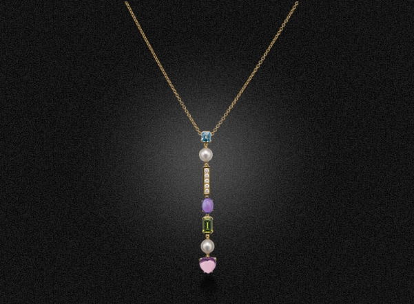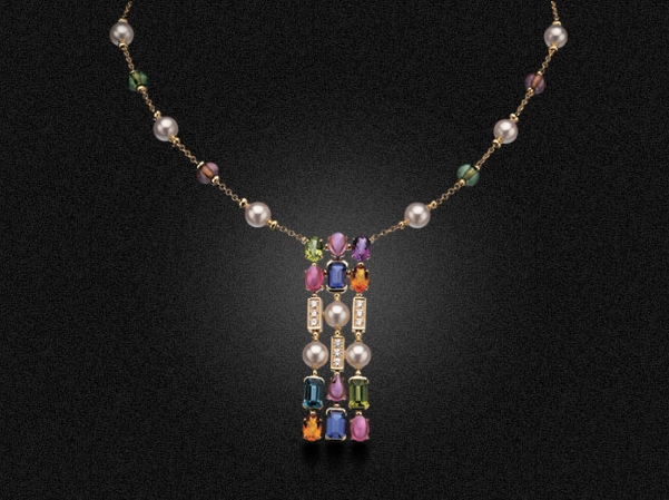 Collection吊坠项链,18K黄金材质,镶嵌粉红碧玺、橄榄石、紫水晶、蓝色托帕石和AKOYA养殖珍珠,饰以密镶钻石。长度37.5-42厘米。http://mmbiz.qpic.cn/mmbiz/osv7xnooomGhhBP8J3wRG93SxXgPDCspXqTMH9T9I4lGhZeQ4RxWMZCNaoCBpicl6ON0bzjQvna1eExEjuqVyIA/0?wxfrom=5宝格丽经典之彩宝款(全集)" TITLE="【珠宝知识】