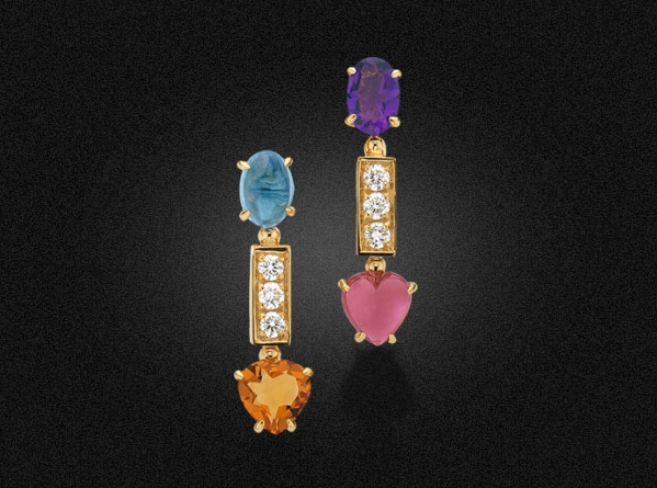 Collection短款吊坠耳环,18K黄金材质,镶嵌粉红碧玺、紫水晶、黄水晶和蓝色托帕石,饰以密镶钻石。长度2.40厘米。http://mmbiz.qpic.cn/mmbiz/osv7xnooomGhhBP8J3wRG93SxXgPDCspezqz5BhDjfjpjGKMfbq1JOeoZYZcKwKIJRdmvHoWU7NoohnibgWYMjQ/0?wxfrom=5宝格丽经典之彩宝款(全集)" TITLE="【珠宝知识】