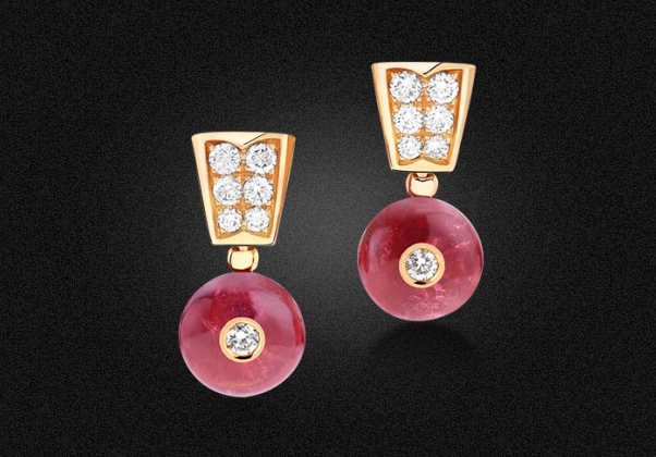 MVSA耳环,18K玫瑰金材质,镶嵌玉髓、红碧玺珠和粉红碧玺珠,饰以密镶钻石。http://mmbiz.qpic.cn/mmbiz/osv7xnooomGhhBP8J3wRG93SxXgPDCspN3djGOlppq61nPQ3I2eyHennIG3a7xZ4ibYLAQRTcNPibFBKH3YTiavfw/0?wxfrom=5宝格丽经典之彩宝款(全集)" TITLE="【珠宝知识】