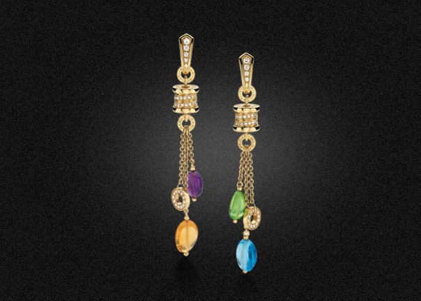 B.Zero1吊坠耳环,18K黄金材质,镶嵌橄榄石、紫水晶、蓝色托帕石和黄水晶,饰以密镶钻石。长度7.75厘米。http://mmbiz.qpic.cn/mmbiz/osv7xnooomGhhBP8J3wRG93SxXgPDCspg4uV0W3YdmeB72q6tVYWkq89JqNHNWiadEtzOU8JjOojsz1vq9ic9YaQ/0?wxfrom=5宝格丽经典之彩宝款(全集)" TITLE="【珠宝知识】