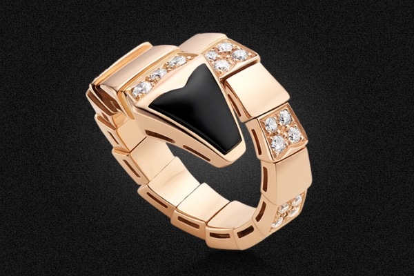 Serpenti戒指,18K玫瑰金材质,饰以黑色缟玛瑙和半密镶钻石。http://mmbiz.qpic.cn/mmbiz/osv7xnooomGhhBP8J3wRG93SxXgPDCspgldxLdCmhbYOicFCicMmTxQrZJDpFJ0YibIsibCDJgpgs3gMjgrT0icx5sA/0?wxfrom=5宝格丽经典之彩宝款(全集)" TITLE="【珠宝知识】