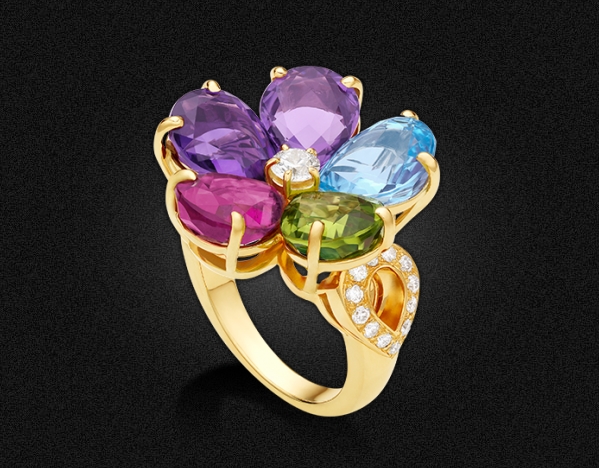 Sapphire Flower 18K黄金戒指,配紫水晶、黄玉、橄榄石、红碧玺和密镶钻石。http://mmbiz.qpic.cn/mmbiz/osv7xnooomGhhBP8J3wRG93SxXgPDCspgs4eYvPPVA8cqf1w4dT3qZWdI2JcmORkRE2Sqwn1WtxvGxxEGHK1Vw/0?wxfrom=5宝格丽经典之彩宝款(全集)" TITLE="【珠宝知识】