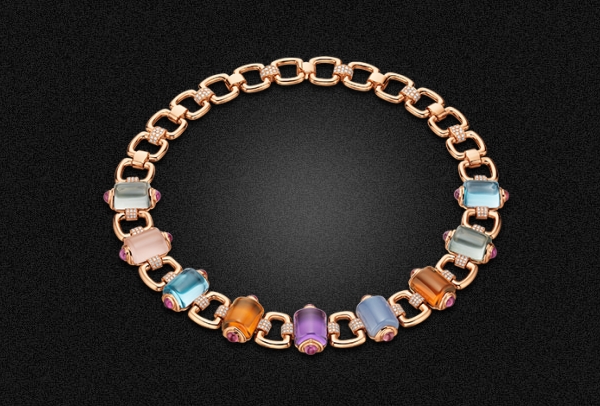 18K玫瑰金DIVA项链,镶彩色宝石和密镶钻石。http://mmbiz.qpic.cn/mmbiz/osv7xnooomGhhBP8J3wRG93SxXgPDCspDkTicYjwBPXPicZF5ia4KHicsaSLyxRg66K4IC3I5SsWodcmrEJ7f6nzRA/0?wxfrom=5宝格丽经典之彩宝款(全集)" TITLE="【珠宝知识】
