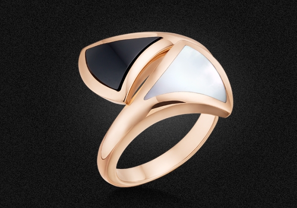 DIVA戒指,18K玫瑰金材质,饰以黑色缟玛瑙和珍珠母贝。http://mmbiz.qpic.cn/mmbiz/osv7xnooomGhhBP8J3wRG93SxXgPDCsppozhwJIOtnvP9uNeewFqcjGahq7435cHvt4j2vJAV3VRKdYJWEdeBQ/0?wxfrom=5宝格丽经典之彩宝款(全集)" TITLE="【珠宝知识】