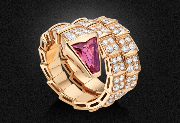 Serpenti 双圈戒指,18K玫瑰金材质,全密镶钻托衬红碧玺http://mmbiz.qpic.cn/mmbiz/osv7xnooomGhhBP8J3wRG93SxXgPDCspv620oB8UFBa7mCW2ibnCuXhOiaVOafSI5pWibuIB3ysLSm2PTJn8V5eAw/0?wxfrom=5宝格丽经典之彩宝款(全集)" TITLE="【珠宝知识】