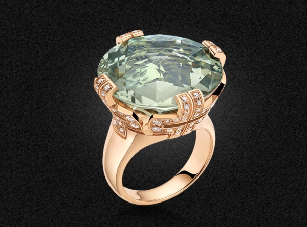 Parentesi Cocktail大号戒指,18K玫瑰金材质,镶嵌绿水晶,饰以密镶钻石。http://mmbiz.qpic.cn/mmbiz/osv7xnooomGhhBP8J3wRG93SxXgPDCspvcZicdJe39FBqMbiaOXDI8z5oK599BtwyiaOwOGOLEmUyJsz2Ctesed0w/0?wxfrom=5宝格丽经典之彩宝款(全集)" TITLE="【珠宝知识】