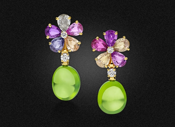 Sapphire Flower 18K黄金耳环,配别致蓝宝石、橄榄石、钻石和密镶钻石。http://mmbiz.qpic.cn/mmbiz/osv7xnooomGhhBP8J3wRG93SxXgPDCspwoNBeCWjuUw17Gfm6uoUprEAnT5WYjYrZvp2Kr7CQN45p63hJgmlww/0?wxfrom=5宝格丽经典之彩宝款(全集)" TITLE="【珠宝知识】