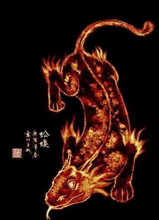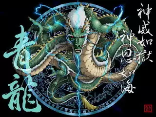 烛龙睁开眼,天下便是白昼;烛龙闭上眼,天下便是黑夜;烛龙吹一口气,天下便是冬季;烛龙呼一口气,天下便是夏天。烛龙从来不吃、不喝,也没有气息。一旦他吐一口气,天下便刮风。他的身形似蛇,身长达千里,面孔似人,周身都是红色的。