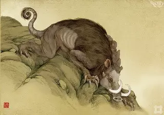 柜山上的畏兽,样子像猪,四肢却长出了爪子,带有锯齿。见到它的地方,地面多起伏,所以猜测狸力善于挖土。