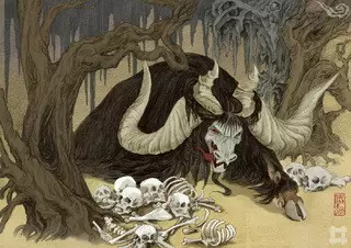 又称为“窫窳”,古代传说中的一种吃人怪兽,像貙,虎爪,奔跑迅速。传说猰貐曾是天神,是烛龙的儿子。关于猰貐的外形有很多种说法,比如人面龙身、大小和狸一样,也有的说是人面牛身马腿,或者说龙头虎身的巨兽。据说由于猰貐喜食人类,所以尧帝命令后羿将它杀死。