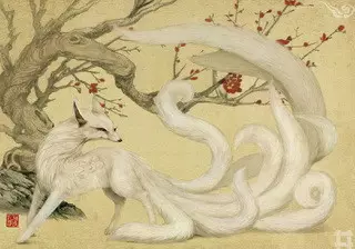 “青丘国在其北,其狐四足九尾。”《海外东经》 “有青丘之国,有狐,九尾。”《大荒东经》 史书中记载,九尾狐成就了“大禹”与“涂山氏”的佳缘,成为了中国古书中出现的最早的“婚姻中介”,传说中人吃了她的肉,可以不逢妖邪之气,抗拒蛊毒。九尾狐在《山海经》中出现了三次,后来成为祥瑞和子孙繁荣的象征。