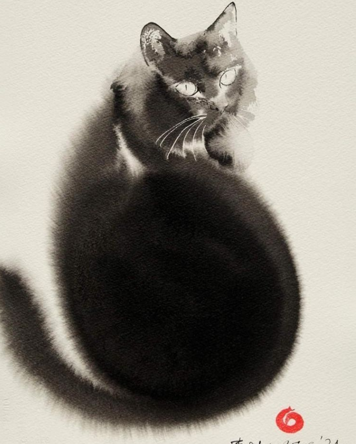 水墨画笔墨猫形中国的传统文化诗意与浪漫 |