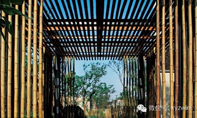 另外,本项目的主题为“格调竹境”,就是要强调住宅区内“竹林”的格调和意境。“可以居无肉,不可居无竹”,竹自古以来就是中国文化的重要意象。该社区南侧的主入口作为售楼处和会所的所在地,看房者要通过曲折又狭长的竹林小径才能到达售楼处的门口,周围被浓密的竹林所环抱,只能看售楼处的建筑立面,这是购房者对楼盘的第一直观印象。然后,要经过左转弯到接待处,再通过景观长廊并登楼梯上二楼样,才看到精心布局的样板房。经过这样回环曲折的空间之后,购房者还要再次穿过架空的二楼会所的底层,才豁然开朗看到整个小区的中轴开阔自然的草坡、森林、湖水的景观效果。这种先抑后扬、豁然开朗的造园手法,让购房者形成强烈的景观震撼感,使之感叹“在竹境中邂逅格调”,这种设计手法使该楼盘的销售量大增。