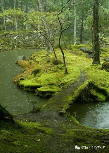 苔藓也可以分布在整个花园之中无论它是环绕着水的结构还是水体。