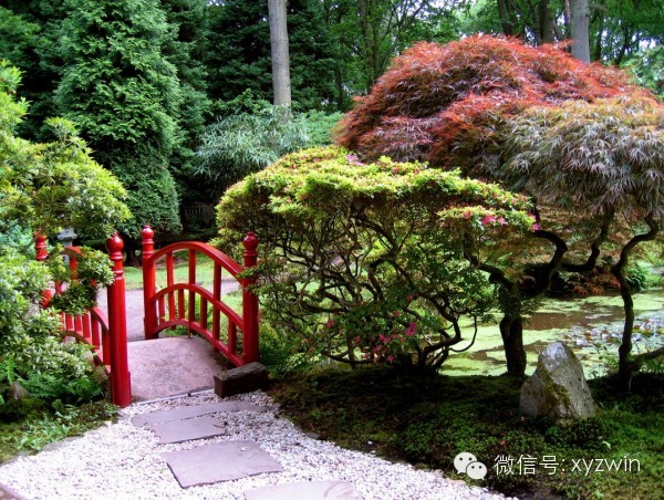 另一个常见的元素“桥梁”。用来连接一个可以自由移动的花园。桥梁可以由木头或石头建造,可以是简单或精致的设计。下面几幅图中有些桥梁是鲜红色木头,而有些就只是简单质朴的石头制成。