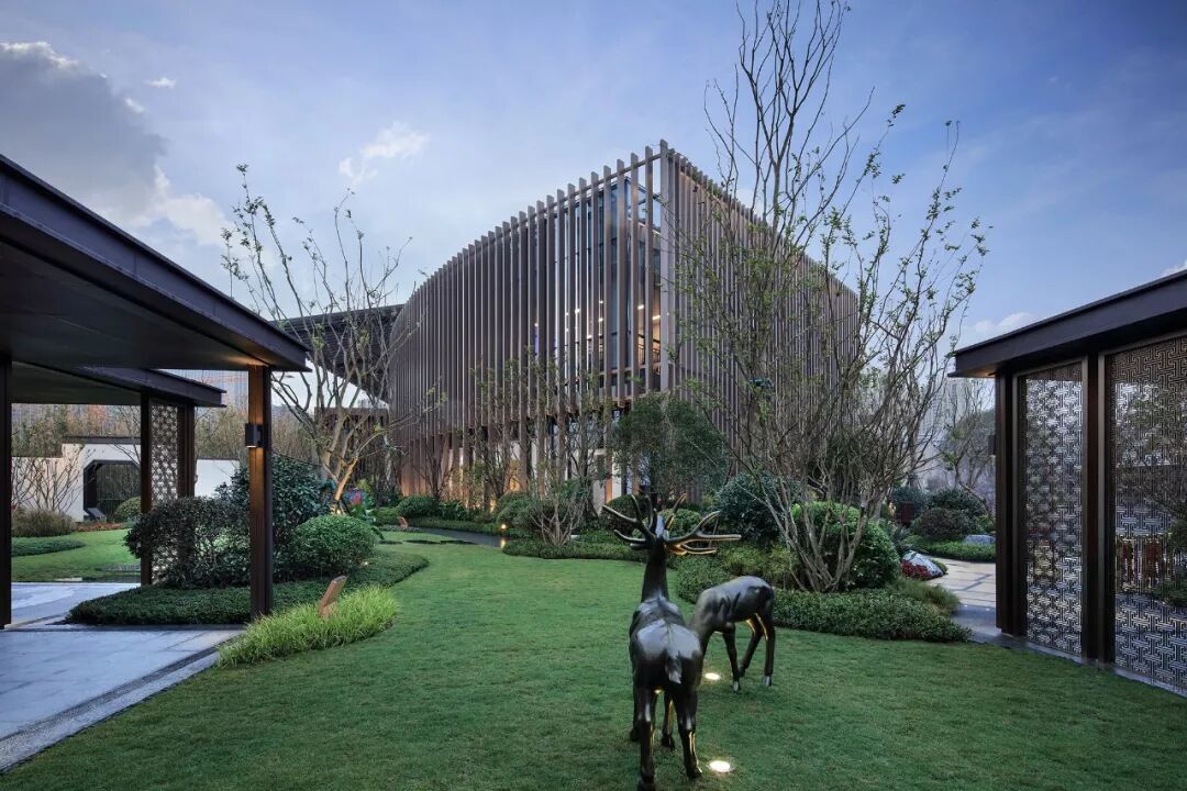 在昔日南宋皇家御花园之所在,宜和园示范区呼应杭州街坊巷弄与邻里文化,通过简约、硬朗的线条勾勒,以山水画般的景墙,流水烟云的园林,黑白相错的建筑,再现宋式写意风韵。以当代生活美学,重塑传统建筑之美。