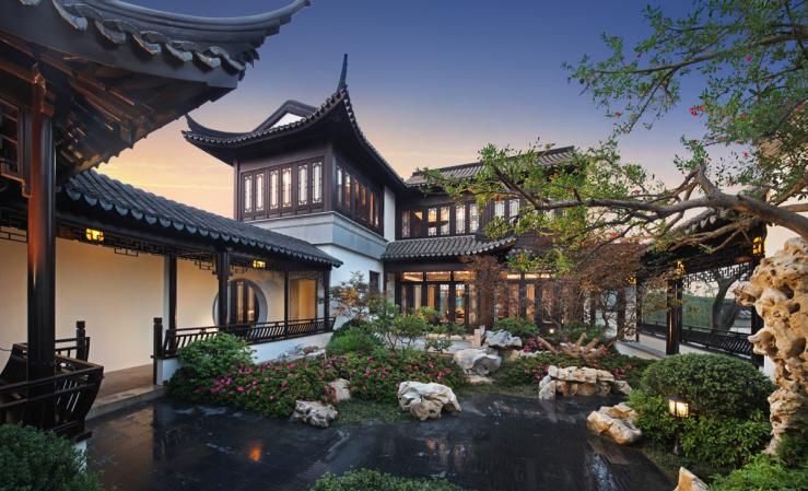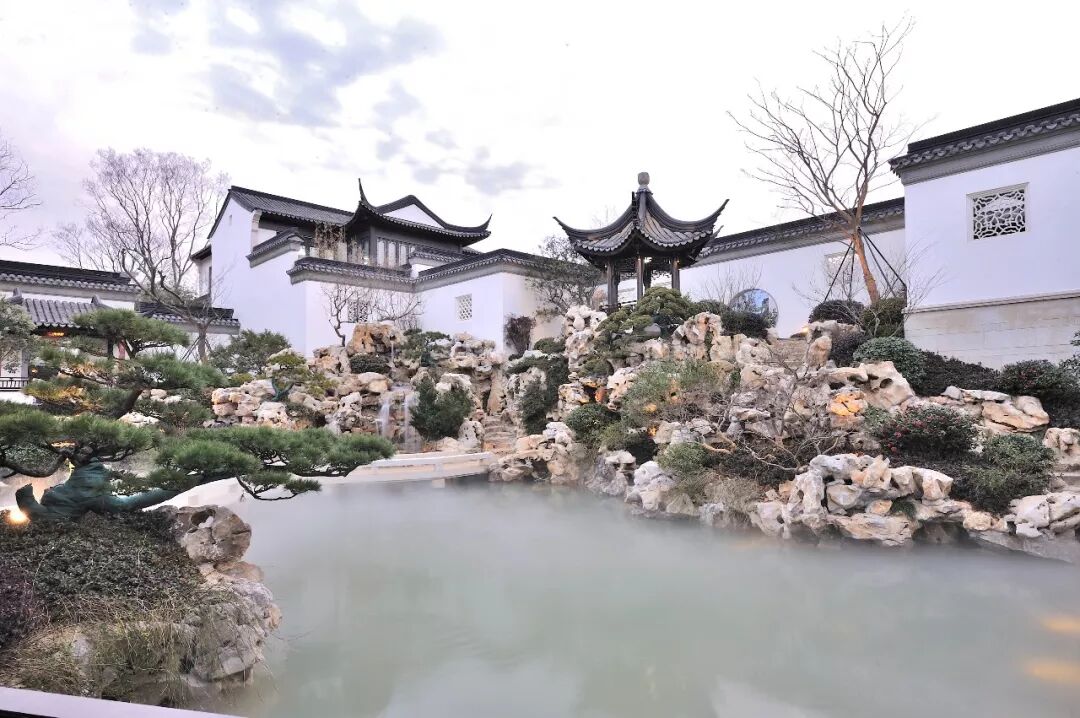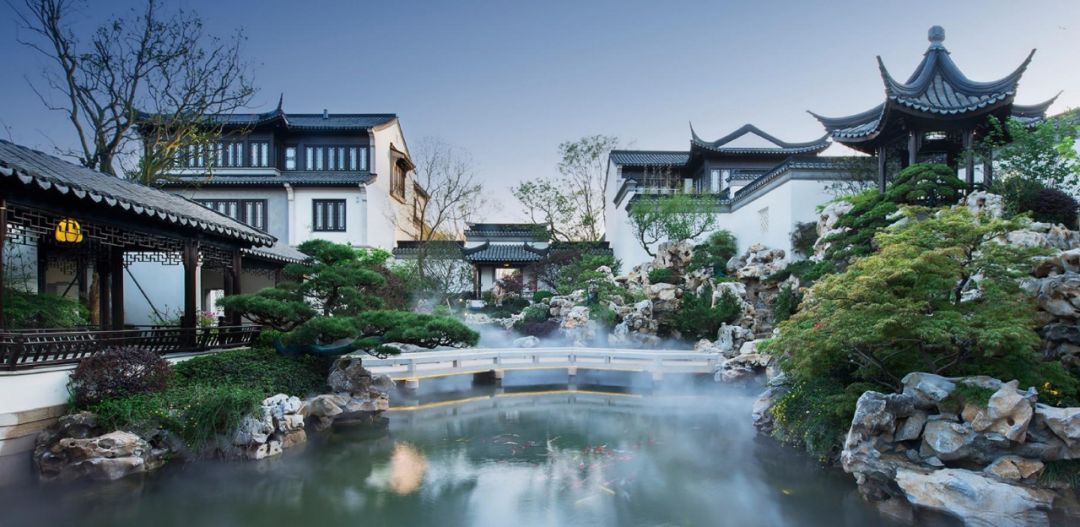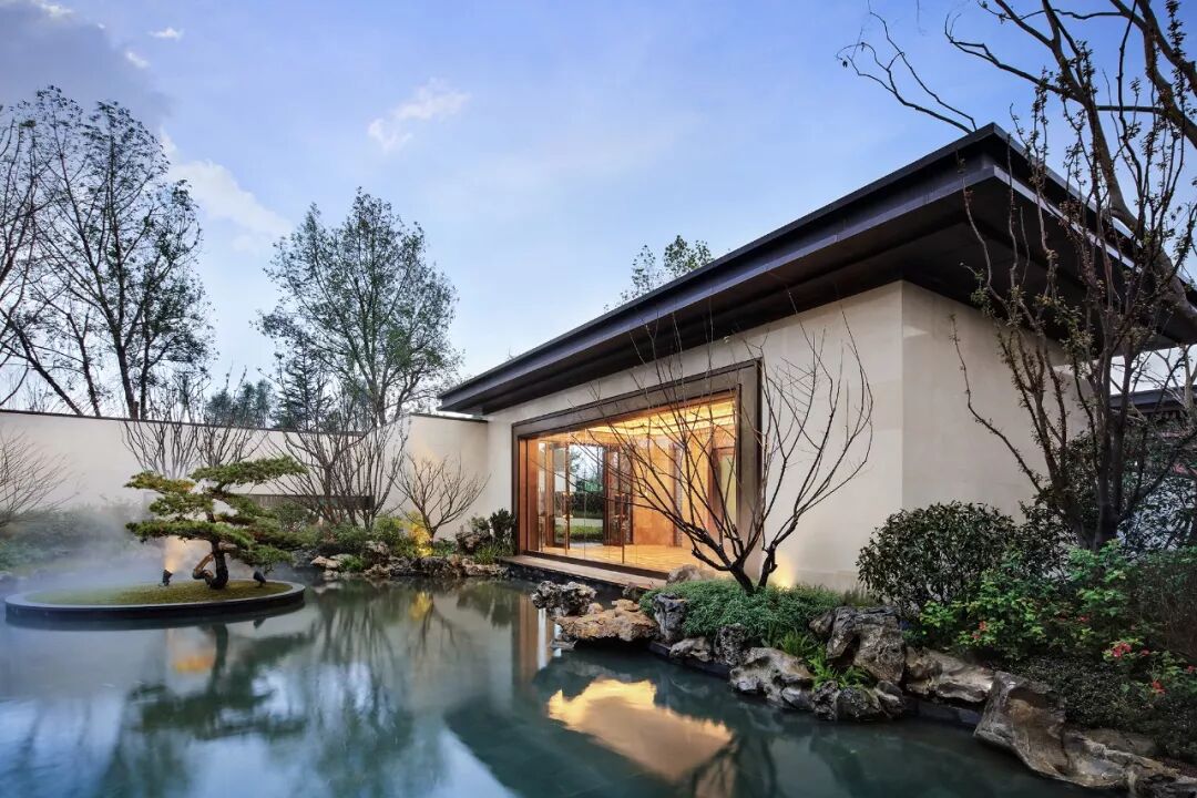 南京桃花源坐落于老山森林国家公园佛手湖畔,周边风景美不胜收。它最大限度地将自然山水和古典园林“借入”示范区之内,用亭台楼阁、山水飞檐重现中国大美,成为中式项目典范之作。
