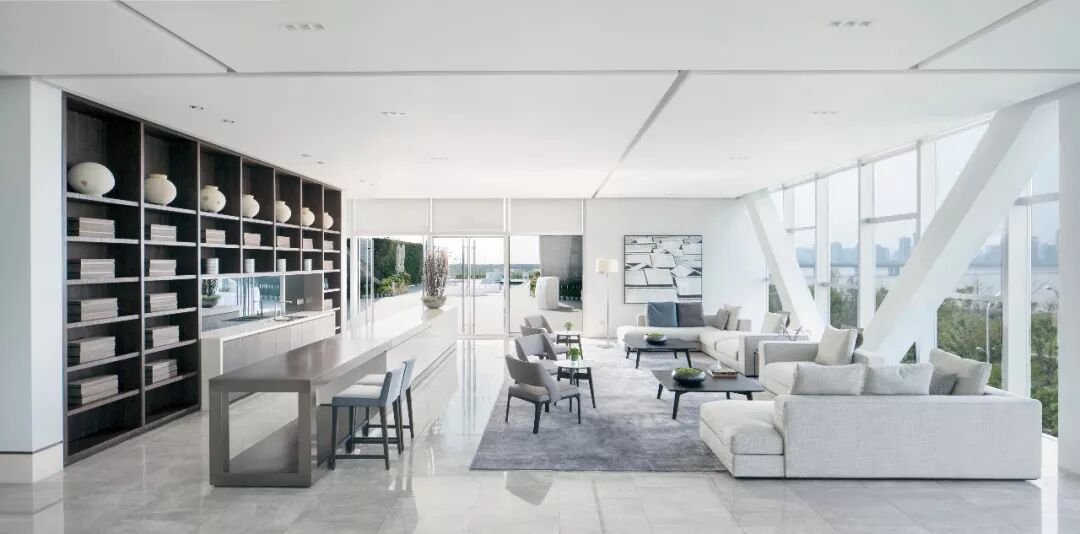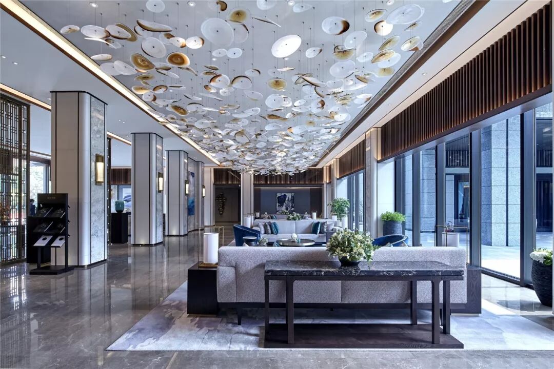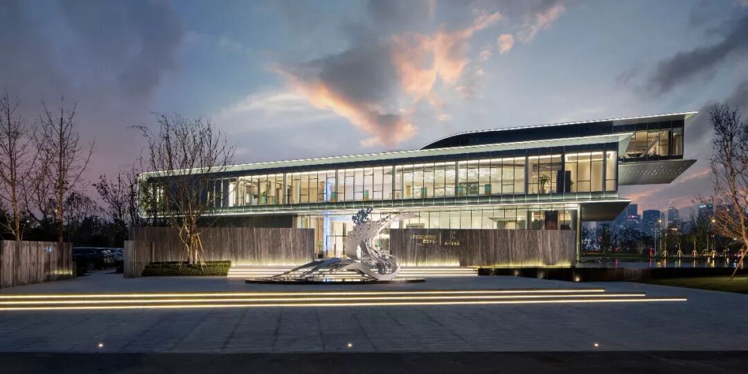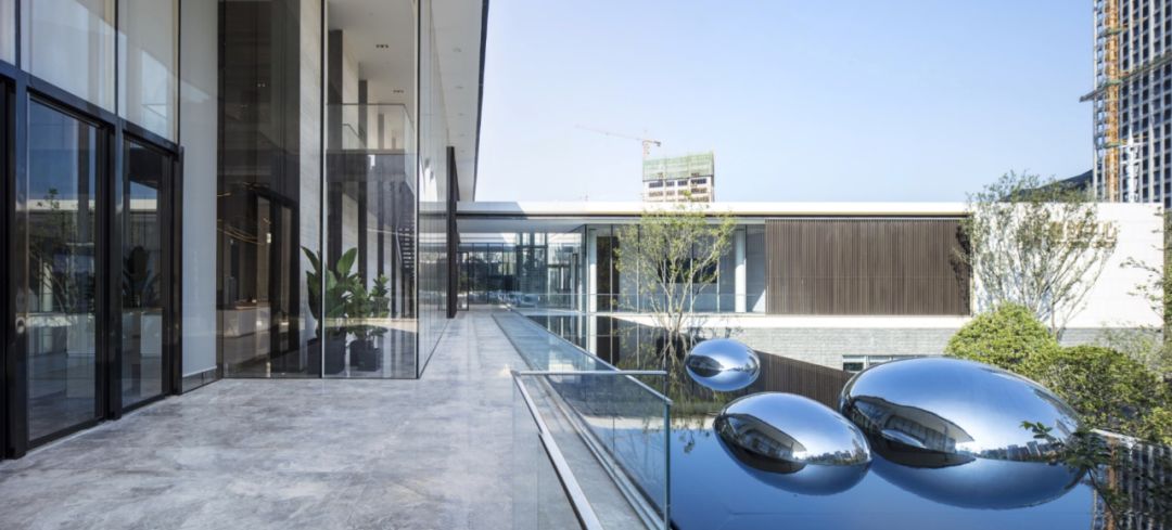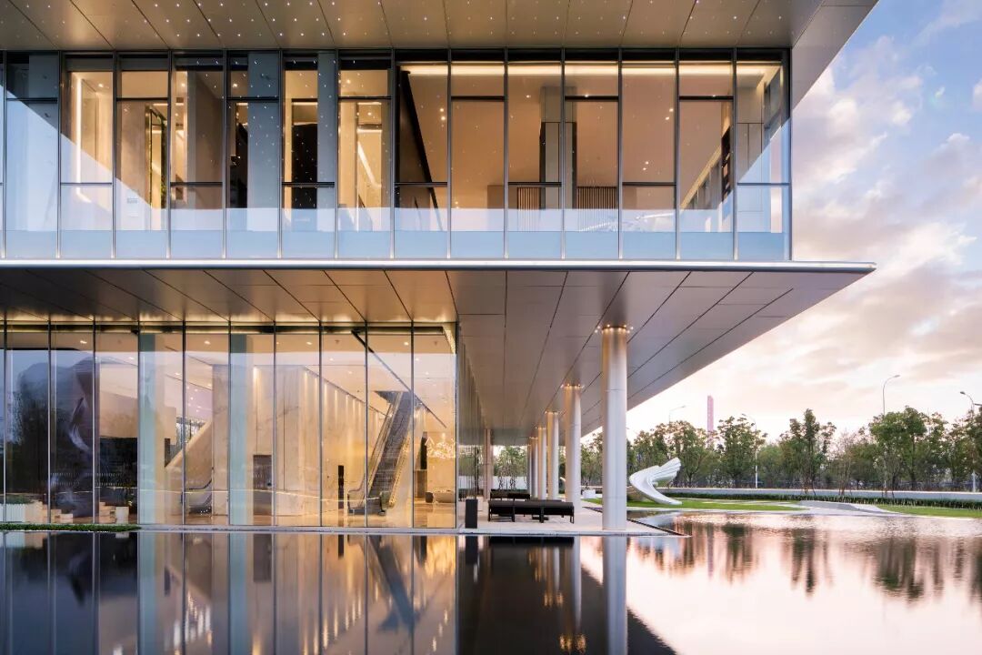 在大型地标建筑林立的钱塘江畔,杭州壹号院呼应周边建筑,通过反重力的设计语言,大面积玻璃材质的应用,以及几何构造的巧妙处理,让示范区整体漂浮在水面之上,打开了更加开阔和富有质感的都市视野。