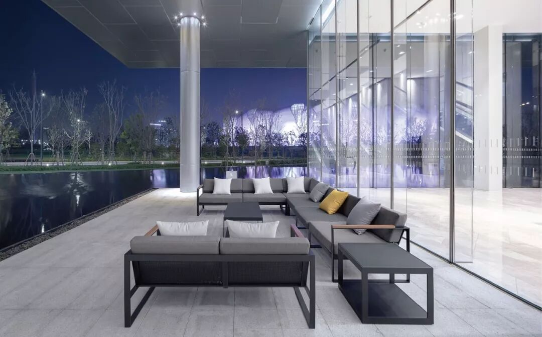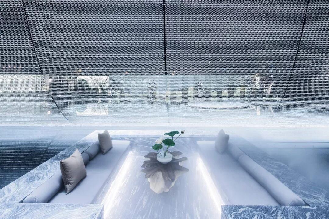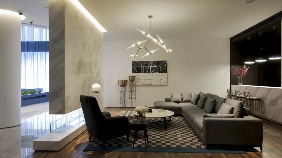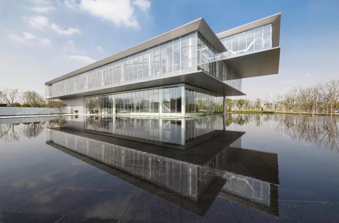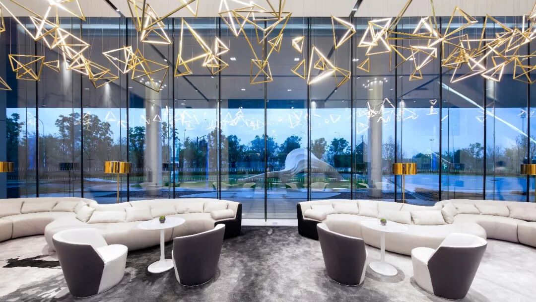 在大型地标建筑林立的钱塘江畔,杭州壹号院呼应周边建筑,通过反重力的设计语言,大面积玻璃材质的应用,以及几何构造的巧妙处理,让示范区整体漂浮在水面之上,打开了更加开阔和富有质感的都市视野。