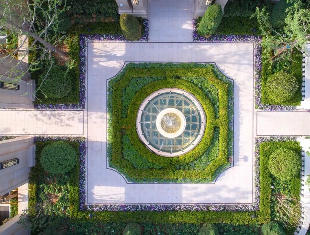 融创重视择址,以及对自然资源的利用。江阴江南御园南瞰近1000亩蟠龙山公园,位于一江三山四园之中。示范区结合自然资源,承袭法式建筑的经典做法,用凡尔赛宫中轴对称形制彰显宫廷礼序,呈现优雅与庄重的氛围。