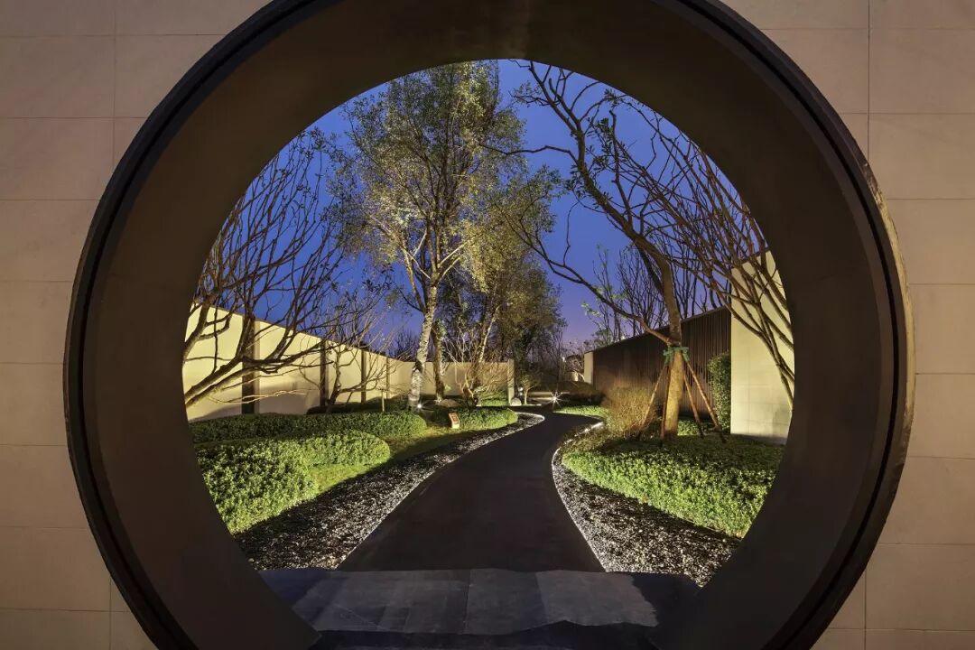 在“林城”贵阳,九樾府示范区演绎出尊贵王府气质和山水画境的东方园林之意。“山水暗纹”与“天圆地方”融汇交错,营造了“水聚天心,四水归堂”的九樾大雅之境;月洞门前的“林间蹊径”勾勒出一幅现实版的“山间蹊径图”。
