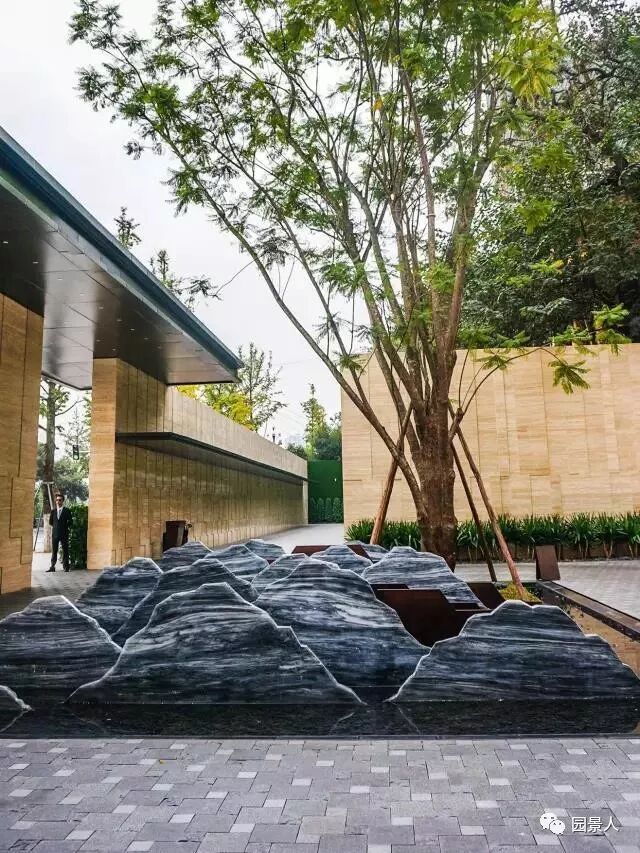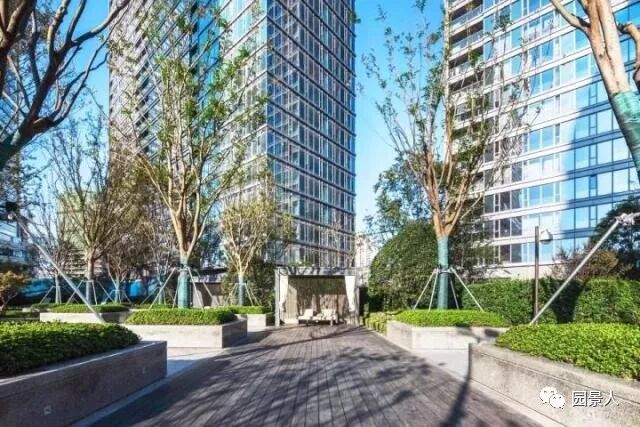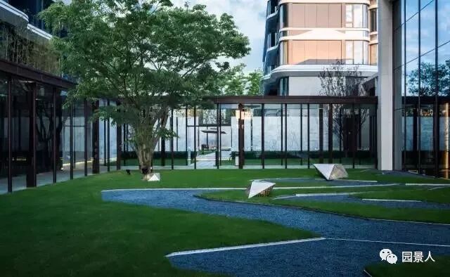 景观作为建筑的基底,作为艺术品下同样精致的基座,如何寻求与建筑的呼应,打造一个整体的社区空间,成为设计师考虑的重点,从空间的延续到材料的运用,都尽可能的一体化考量。