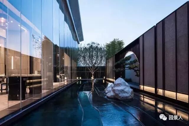 项目继承古代府系三进式格局思路,首创“景观配套化”理念,注重次序感,以山、水、石、月打造四重庭院景观组团,打造“小面积、大体验”的自然新中式生活。