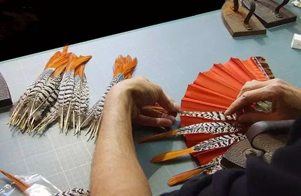 如今的Duvelleroy折扇和200年前一样,仍然由同一家巴黎高级手工坊制成。一把Duvelleroy折扇的制作需要经过十道工序,绝不逊色于一款高级腕表。由牛角、乌木和贝母制成的扇柄,不差毫厘、对称一致的扇折和精心挑选、精细镶嵌的蕾丝、羽毛和亮片一同打造一把工艺精良的高级手工折扇。
