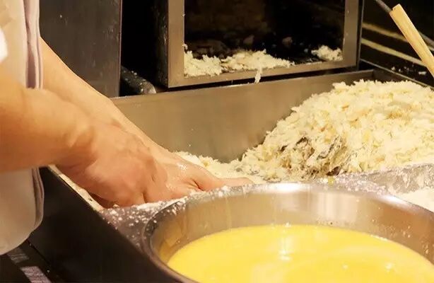 在烹制上等猪排时,猪肉裹层也是极其重要的因素。在匠庵店,只有在顾客点单之后,大厨才会用特殊的面包磨制碎屑。这种裹料能让热量缓缓穿透整块猪肉,令炸猪排有松软、多汁的质感。