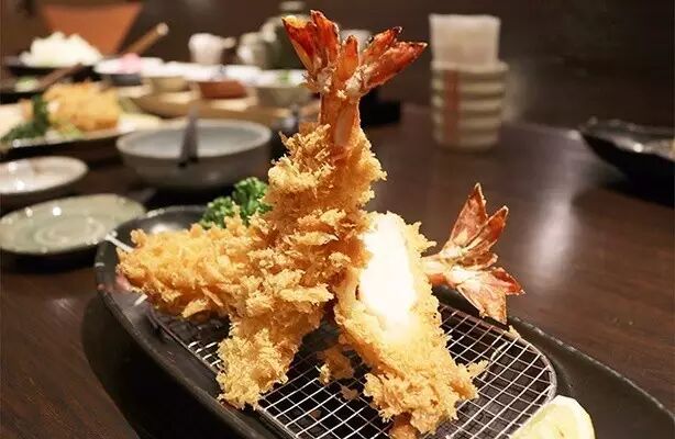 虽然匠庵店的主菜是炸猪排,但油炸海鲜也出现在了菜单上。油炸大对虾禅餐中,两只硕大的对虾令人印象深刻。恰到好处的油炸温度令对虾既有弹性又鲜嫩柔滑,令人爱不释口。