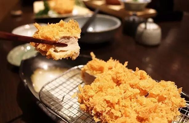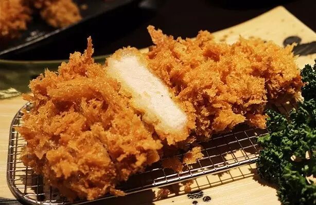 类似于法式猪排的鲜嫩肉排被裹上面包粉,放入油中悉心烹炸,这款独具日本风味的天妇罗炸猪排便应运而生。