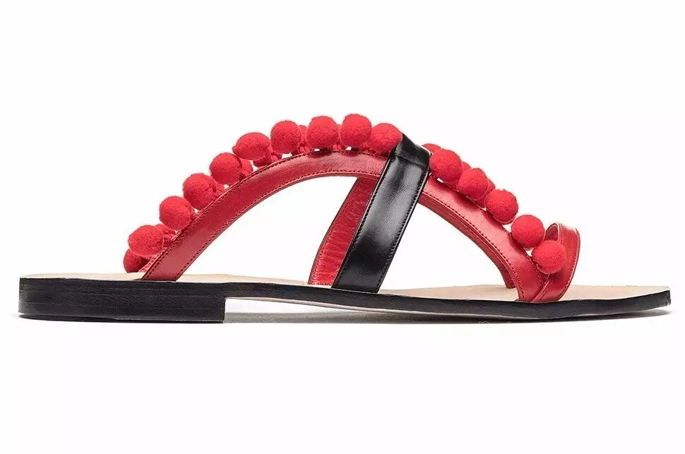 2017春夏系列中的Andaluxflat平底凉鞋装点着红色毛球,充满假日气息