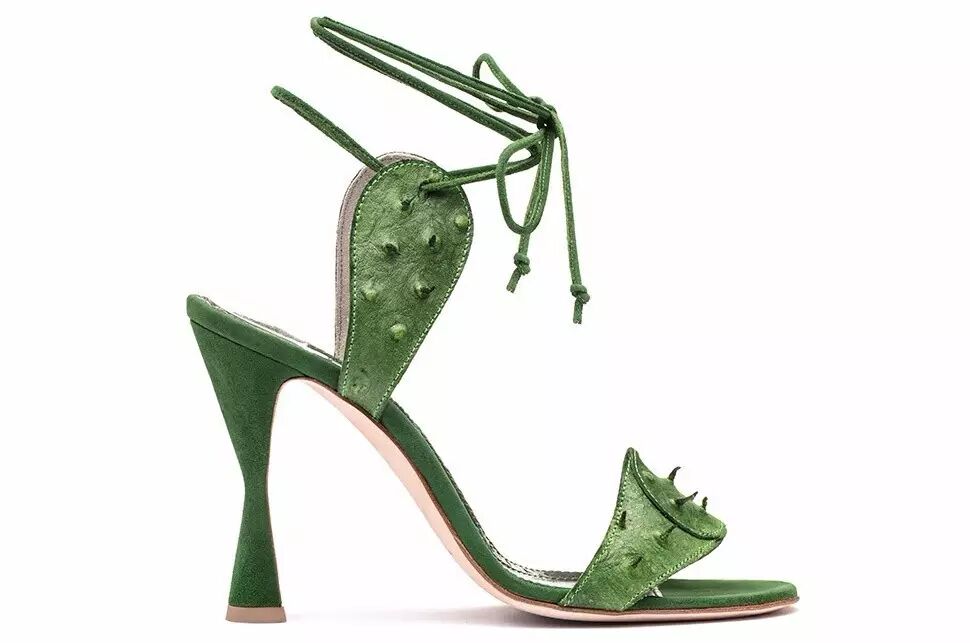 2017春夏系列中的Mandinga高跟凉鞋以西班牙加纳利岛的多刺梨仙人掌作为灵感设计