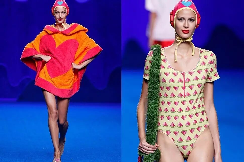 贵族出身的西班牙设计师Ágatha Ruiz de la Prada在品牌2017春夏系列中推出了多款可爱单品,比如心形印花毛巾罩衫和西瓜印花连体泳衣等等