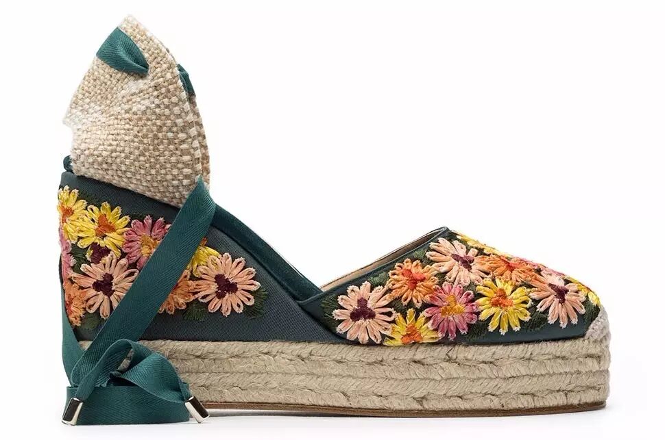 魅力十足的沙漏型后跟和浓郁的层层绿色,尖形脚头与踝部细节等等,这些鞋履最适合搭配纯白色太阳裙以及完美的日晒肤色。