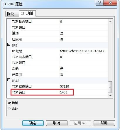 2.打开SQL Server 配置管理器,在SQL Server网络配置节点下,点击“SQLServer2008R2的协议”->右键"TCP/IP"属性->修改IPAll下的TCP端口为1433,当时我那里是空的,所以导致一直无法连接成功。